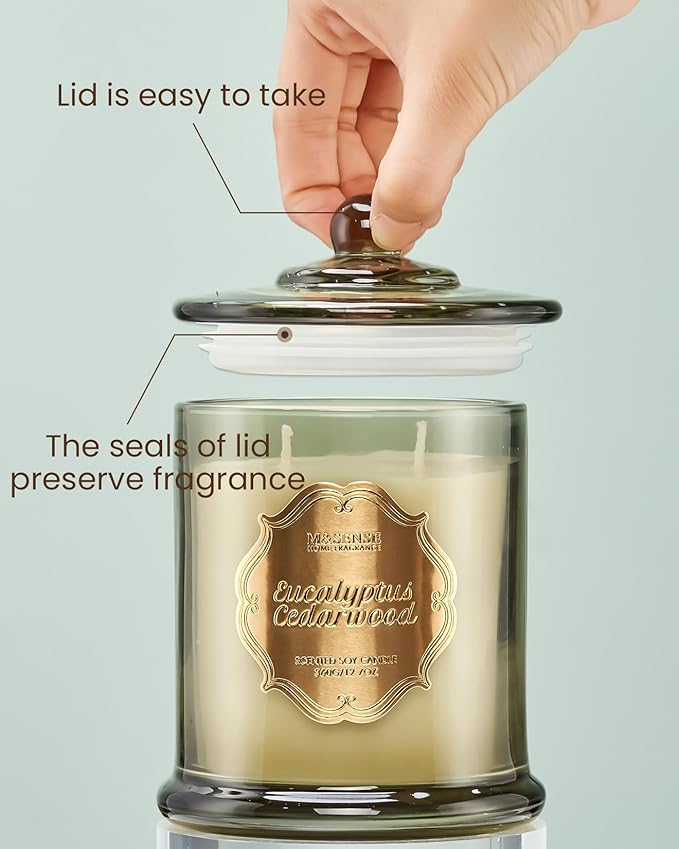 M&SENSE Eucalyptus Cedarwood Scented Candles, 2 Wick 12.7oz Large Jar Candle 75H Long Lasting, Plant-Based Non Toxic Natural Soy Wax, Aromatherapy Candles for Stress Relief,Gifts for Men Women Father