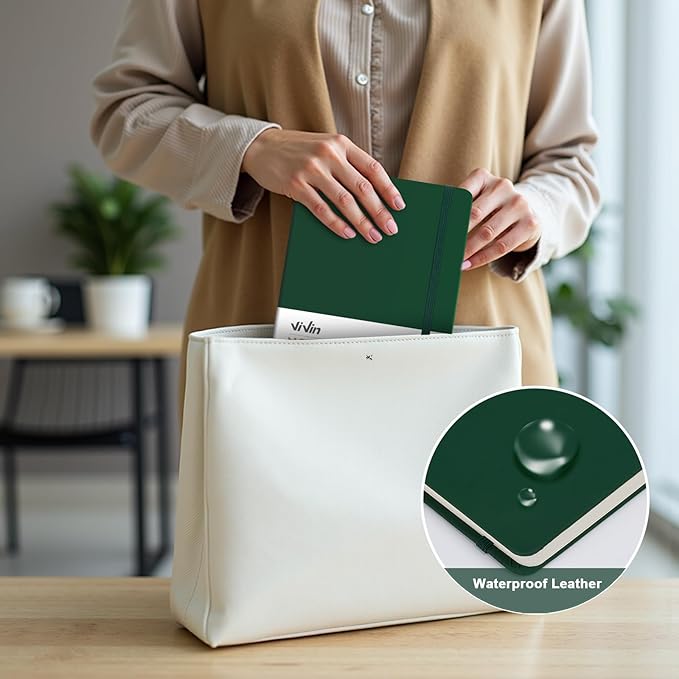 - 【Hardcover Leather Journal】The journaling notebooks crafted with waterproof faux leather, this A5 notebook (5.5"x8.3") balances durability and portability. The smooth-touch cover withstands daily commutes while protecting your ideas in style.
