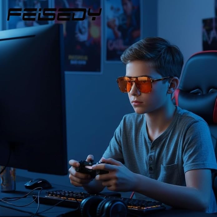 - Computer Gaming Glasses - When Facing the screen for a long time absorbs a lot of blue light, will cause eye fatigue and migraines. FEISEDY gaming glasses protect your eyes from blue light exposure during extended gaming or screen use. Improive your gaming experience. Perfect for gamers and computer users protecting eye health.