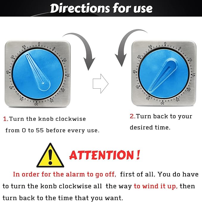 - With Its 85dB Mechanical LOUD ALARM: Our Mechanical workout timer ensures that you stay on track with your fitness routine without missing a beat. Unlike battery-powered timers, This desk timer for productivity operates without the need for batteries, showcasing its commitment to energy efficiency and environmental sustainability. The alarm's robust design emits a powerful sound, easily reaching a radius of approximately 10 meters even in low noise conditions. This means you can confidently tackle your workout regimen, knowing that you'll never miss a cue, even if you're in another room. Enjoy peace of mind and stay focused on your goals with our reliable and effective work timer.