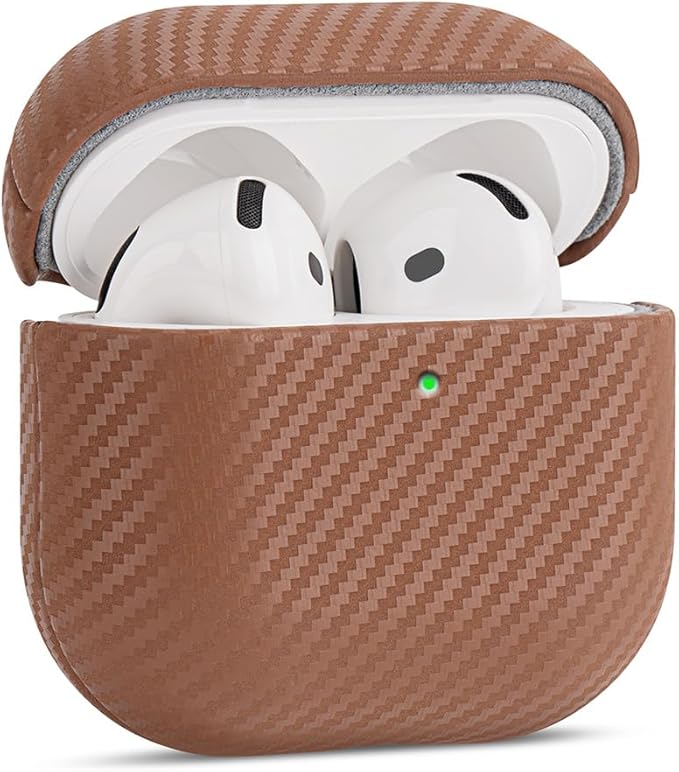 Leather Case - for AirPods 4 with Active Noise Cancellation/AirPods 4 Case Cover - Selected Skin-Friendly Leather, with Carbon Fibre Texture, Handmade Drop Protective Hard Cover - Brown