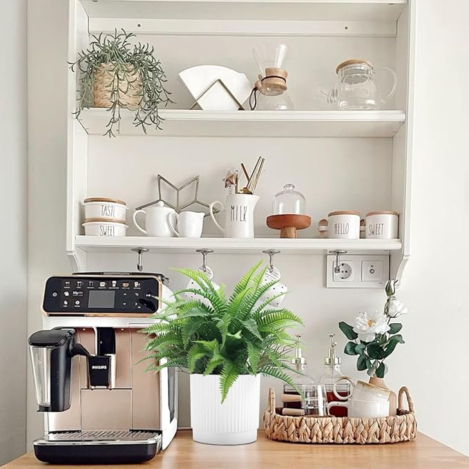 - 【Larger Size for Home Décor】Our fern potted plant has been upgraded to a larger size, adding more substance and appeal to your home decor. The hole fern artificial plants indoor measure 12.2" tall and 11.5" wide,pots measure 4.5" tall and 4" diameter.