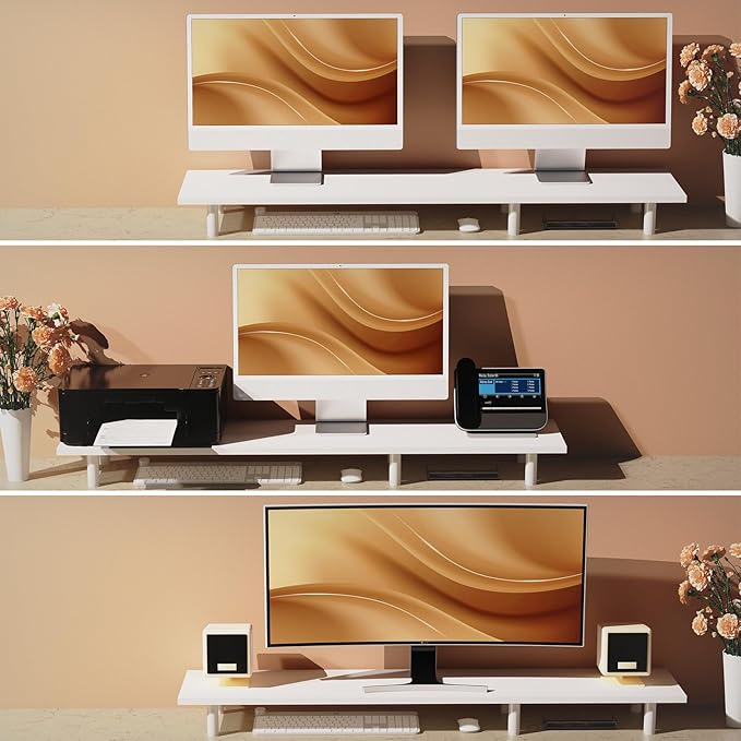 - 【Large Monitor Stand】The dimensions is 43.3"L X9.1 "W X 3.9"H. Computer monitor stands for 2 or3monitors/laptop/TV. This is an ideal choice when you need multiple computers to work together