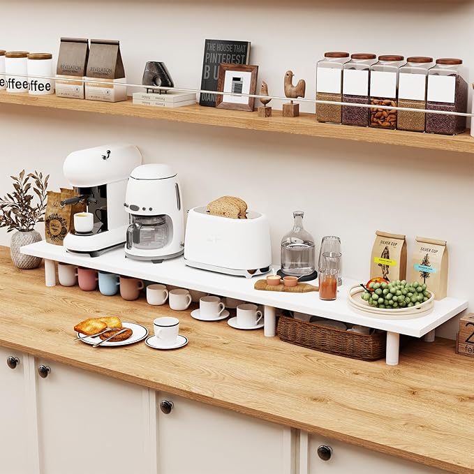 Large Dual Monitor Stand Riser 43.3IN,White Home Office Storage For Desk Accessories,Solid Wod Desk With Adjustable Legs For computer/PC/Laptop/Printer/Container/dressing table