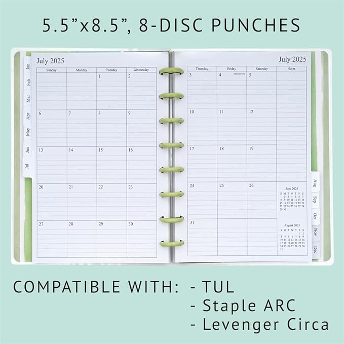 - Planner refills with 8-disc punched, compatible with Staples Arc, Levenger and TUL junior size planners