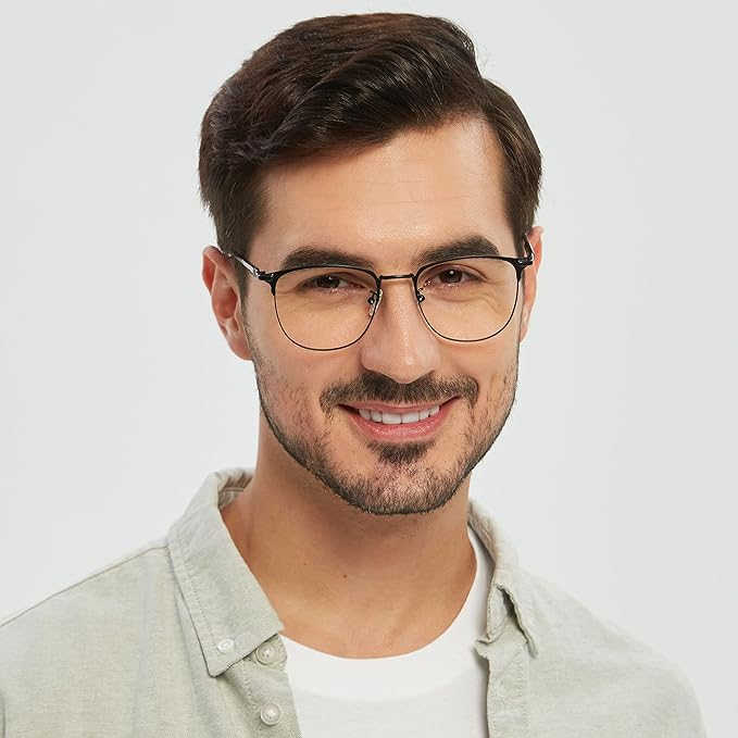 - [Premium Polycarbonate Lens] Offer the newest high-tech lens, barely tinted, and improve clarity of your glasses to restore the true color. The Lens are anti-scratch coated to improve the durability of the glasses. Our Lens are anti-reflective to reduce glare. Polished metal technology, pass the 48-hour ongoing reliability test, is not easy to fade, and has no pressure on the bridge of the nose!