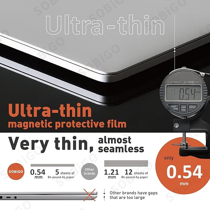 - Magnetic Easy Installation & Transparent Nano Washable Adhesive Strips – Featuring innovative transparent nano washable adhesive strips that prevent the screen protector from falling off, while allowing for easy cleaning and long-lasting adhesion. The magnetic design ensures simple installation and removal without tools, leaving no sticky residue. The unique design won’t obstruct the screen display, keeping the visuals clear and unobstructed.