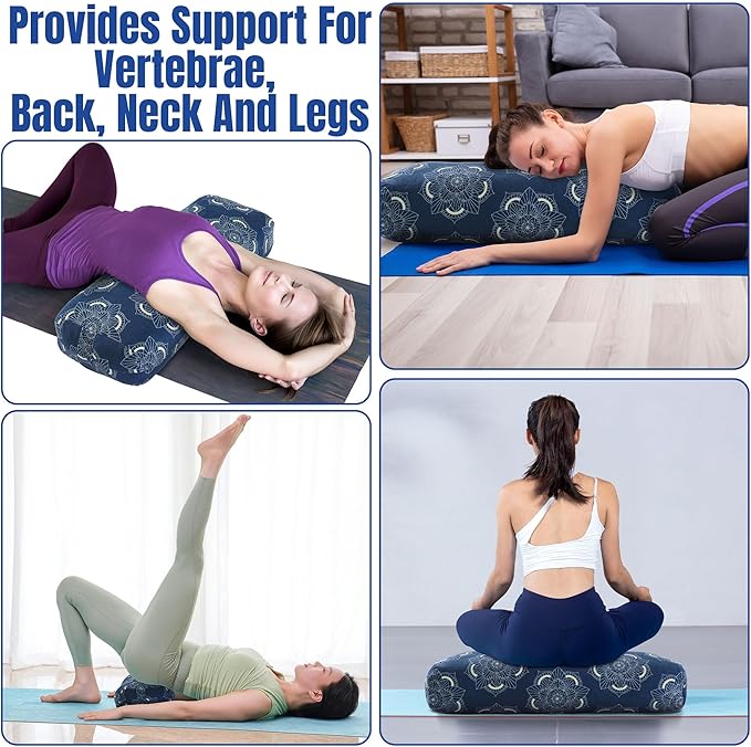 - Perfect Companion to Yoga: This yoga bolster delivers the perfect level of support, help relieve joint stress, provides lumbar spine relief, deep stretches and complete relaxation.