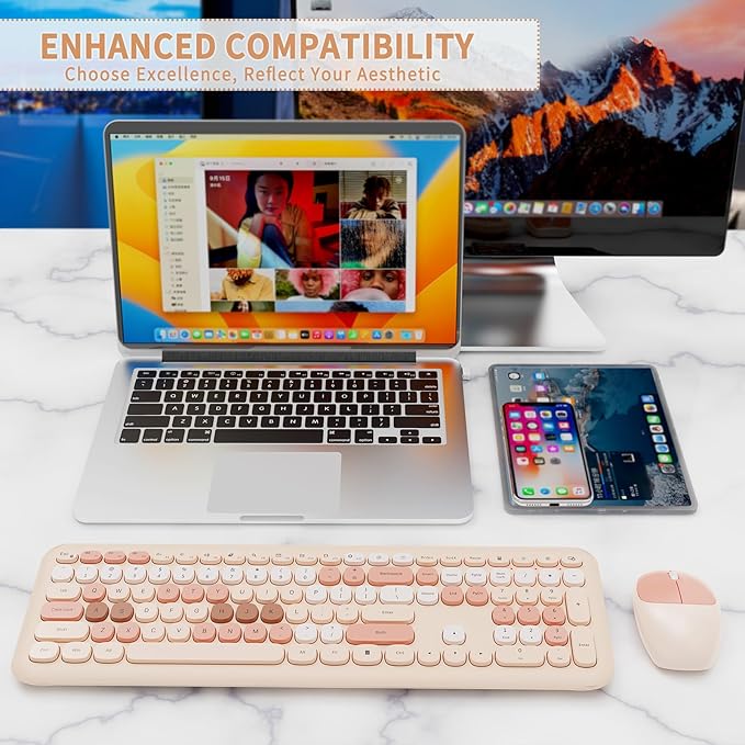 - šŖµ DURABLE AND RELIABLE BUILD Made with premium materials, this coffee brown wireless keyboard and mouse combo features tactile keycaps for smooth feedback and sturdy construction, ensuring reliable performance for daily use.