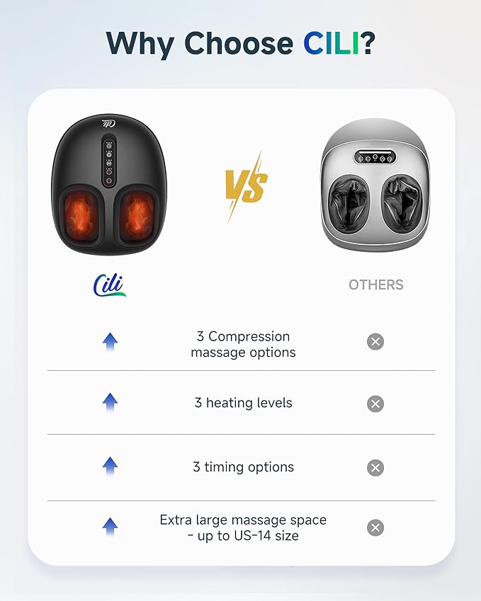 - Soothing Warmth, Anytime –goodbye to cold feet: CILI heated foot massager -more than a foot massager, it’s your perfect foot warmer. With 3 adjustable heat settings, it gently warms your feet, helping to ease daily pressure, melt away fatigue, and improve your sleep routine. A must-have foot warmer in chilly weather or after long hours on your feet.