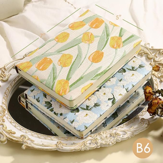 Small Journal for Women, Floral Notebook, B6, 5x7, Ruled Notebook & Blank Sketchbook, Embroidered Journal, Hardcover, Lay Flat, Personal Writing Journal for Women, Cute Journal, Tulip Flower