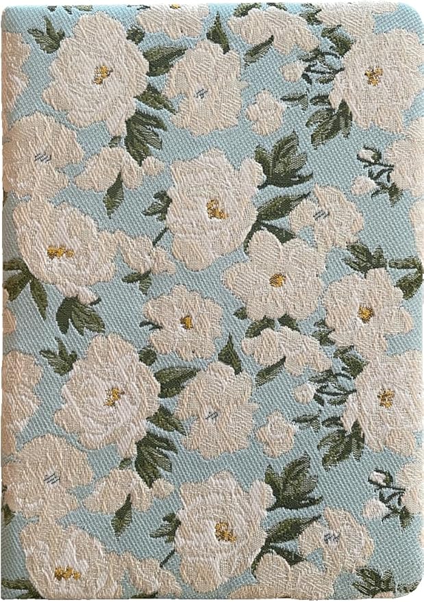 - Chic Fabric Design: the cover features a delightful blue cloth adorned with elegant white gardenias, adding a touch of sophistication to your desk or bag.