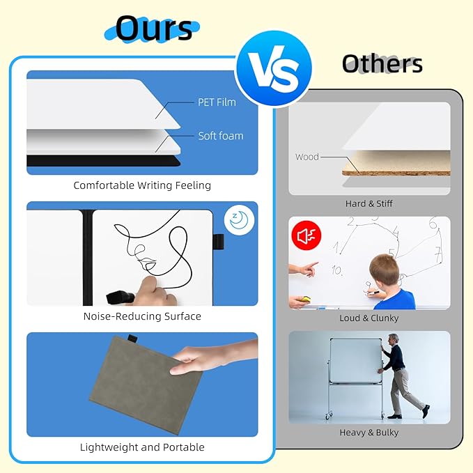 - 【Portable & Durable】The lightweight and compact design of portable white board means it fits neatly into bags or backpacks. Its sturdy construction ensures it will last a long time, so you can use it wherever inspiration strikes.