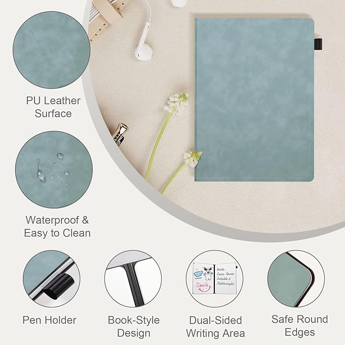 - 【Complete Accessories for Instant Use】The whiteboard notebook set comes with a pen bag, three colored pens, and a large eraser. Each pen has a built-in eraser for quick corrections, and the board includes a pen holder so you’re always ready to write.