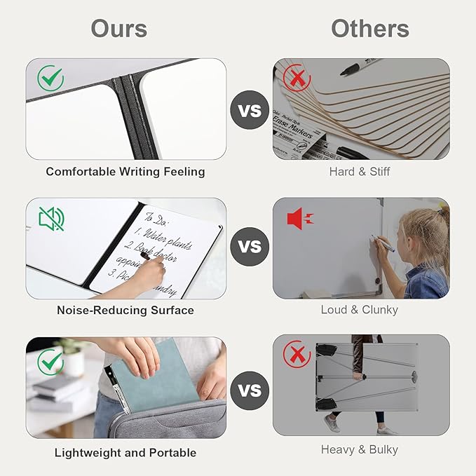 - 【Portable & Durable】The lightweight and compact design of portable white board means it fits neatly into bags or backpacks. Its sturdy construction ensures it will last a long time, so you can use it wherever inspiration strikes.