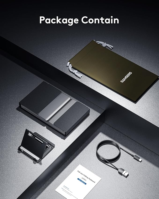 - 【Little Things & Big Convenience】 Samsers folding keyboard with backlight, only 11.0 ounces. Palm-sized keyboard can be folded up magnetically and put in your briefcase without taking up much space. Maximum convenience for you with minimum weight and size! Comes with a phone stand and a velvet storage bag, the perfect companion for a folding keyboard. Not just a keyboard, but a travel solution!