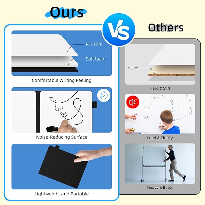 - 【Double-Sided Design】The double-sided design of this reusable whiteboard makes it more practical in any environment. You can use both sides of the dry erase white board for different purposes. For example, you can use one side of the folding white board to write down notes and ideas, while the other side can be used for calculations or diagrams