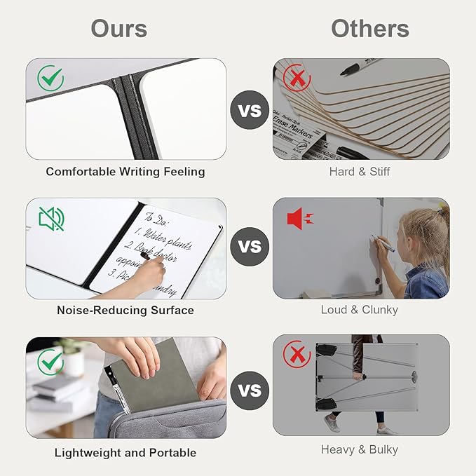 - 【Portable & Durable】The lightweight and compact design of portable white board means it fits neatly into bags or backpacks. Its sturdy construction ensures it will last a long time, so you can use it wherever inspiration strikes.