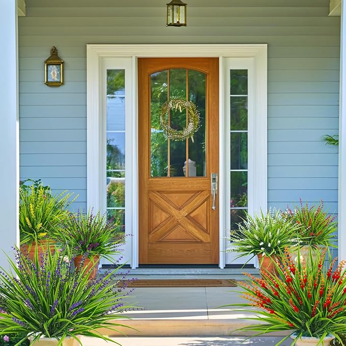 36 Pcs Artificial Plants Outdoor, UV Resistant Fake Outdoor Flowers Faux Plastic Monkey Greenery Grass for Front Porch Window Box Outside Garden Home Office Planters Desk Decor (Mixed Color)