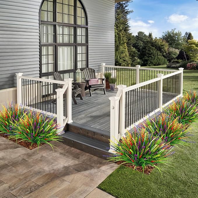 - Vibrant Decor: Our outdoor artificial plants in yellow, white, pink, red, purple, and orange bring charm to any space. Perfect for home, garden, porch, window box, desk, or hanging baskets, adding life and beauty indoors and outdoors
