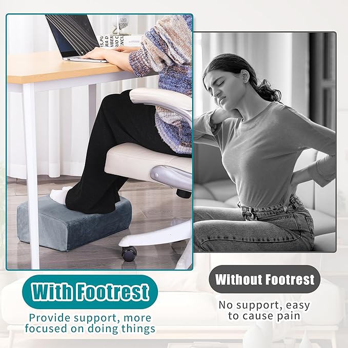 - 【Adjustable Height】: Our under desk footrest adopts a two-piece design, connected by magic tape in the middle. Three heights are available for adjustment, namely 6 inches, 11 inches and 17 inches. You can adjust the height of the footstool according to your own experience.