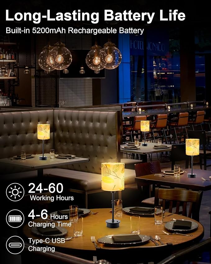 - Fast Charging & Long Lasting Battery Life: Enjoy up to 24-72 hours of lighting with this rechargeable battery lamp. The 5200mAh battery charges quickly in 4-6 hours, and its long-lasting battery ensures uninterrupted use. Perfect for bedside lamps, nightstand lights, or for those who need a portable light solution that doesn’t require constant recharging