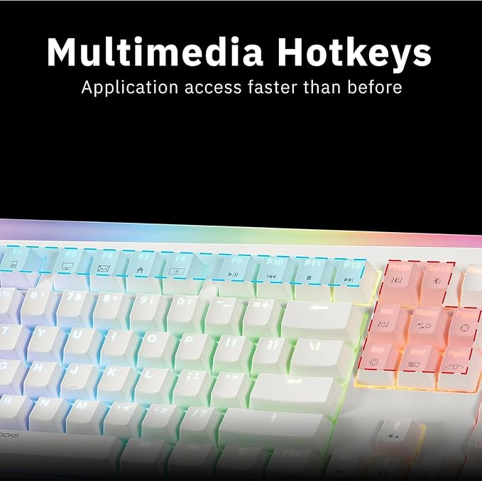 - 【RGB switches】⚡️Deliver up to 50M click lifespan. Powered by an advanced microcontroller, it features N-key rollover and anti-ghosting for smooth and precise gaming or fast typing. Add a vibrant touch to your gaming setup with customizable RGB lighting.o ghosting and avoid having that nasty oily look overtime