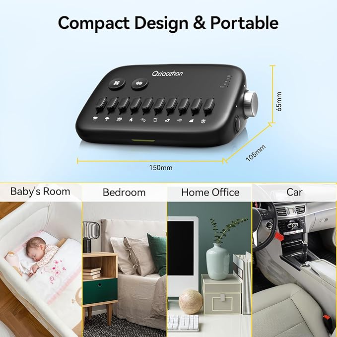 - [4 auto-off timers & adjustable 16 volumes] The Qxiaozhan portable sound machine features 4 auto - off timers (30/60/90/120 minutes), making it easy for you to fall asleep. It has 16 volume levels, allowing for precise adjustments using the knob on the right side. Equipped with 2 high - quality built - in speakers, it delivers clear sound effects, creating an ideal sleep