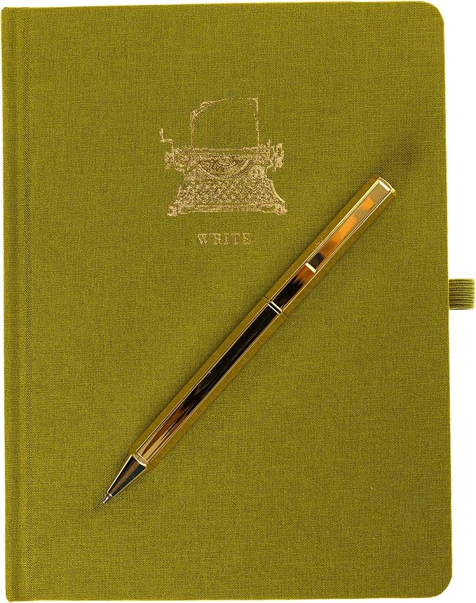 Graphique Typewriter Lined Journal Plus Pen Luxe Collection, Hardcover Diary Notebook for Writing, Gold Foil Embossing, 160 Pages, 6” x 8”