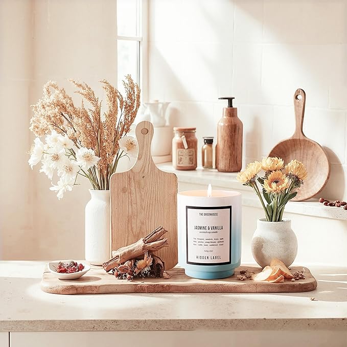 Hidden Label Jasmine & Vanilla Soy Candles, 12oz/75-Hour Burn Time, 100% Natural Soy Wax, Aromatherapy Candle for Stress Relief, Meditation, Yoga & Relaxation,Home Décor
