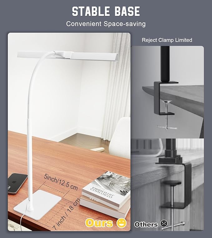 - EYE-CARING TASK LIGHT: Protect your eyes from strain by using this eye-caring desk lamp designed with high-quality lamp beads that emit soft, uniform light without flickering or harmful blue light emissions. Say goodbye to uncomfortable glare and hello to a soothing, steady glow that ensures optimal eye comfort for extended periods of reading, studying, or crafting.