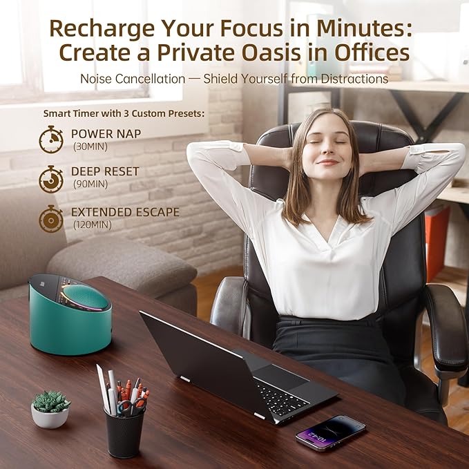 - 【50+ Natural Sound Library & Noise Masking】✅ Block neighbor/office chatter, traffic noise, or baby cries with ocean, rain, brook, bird, thunderstorm, bonfire, white noise, brown noise, pink noise, fan, heartbeat, singing bowl, calming music and more sound therapy, rainforest ambiance or white noise machine ✅ No self-noise, 27-Level adjustalbe volume, with bluetooth — ensures pure, distraction-free immersion, Whether you are in the office, working from home, or in need of rest, meditation, sleep aid.