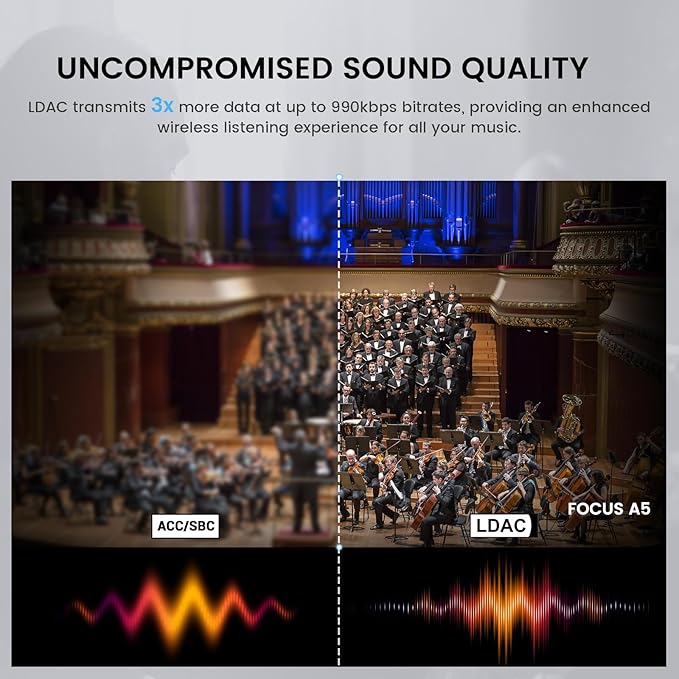 - Studio-Grade Sound, Wherever You Are. Focus A5 noise cancelling headphones support LDAC for Hi-Res Audio Wireless sound. LDAC enables the transmission of audio content, including High Resolution (Hi-Res) Audio, at the maximum bitrate of 990kbps even over a Bluetooth connection. With 3x the data transmitted, LDAC provides an enhanced wireless listening experience for all your music.