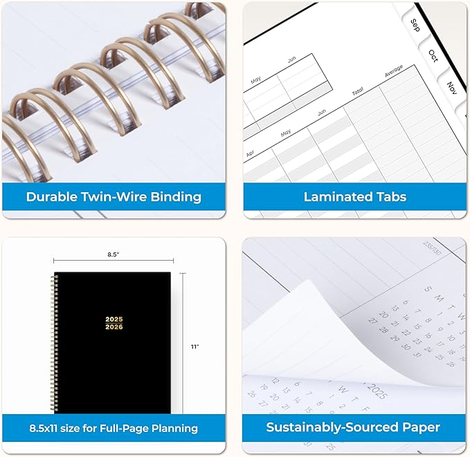 - [BUILT TO LAST] Designed with a flexible cover and premium pages that endure daily use while maintaining a sleek, professional look. Printed on quality FSC-certified paper with convenient laminated tabs that are durable enough to handle daily use throughout the school year and beyond