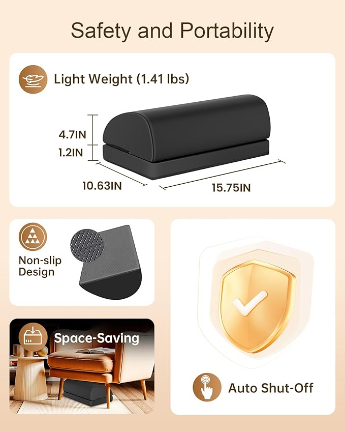 - Foot Stool with 2 Level Heat - Designed for cold weather and poor circulation, the heating function offers three warmth levels to boost comfort Perfect for keeping your feet cozy in winter.