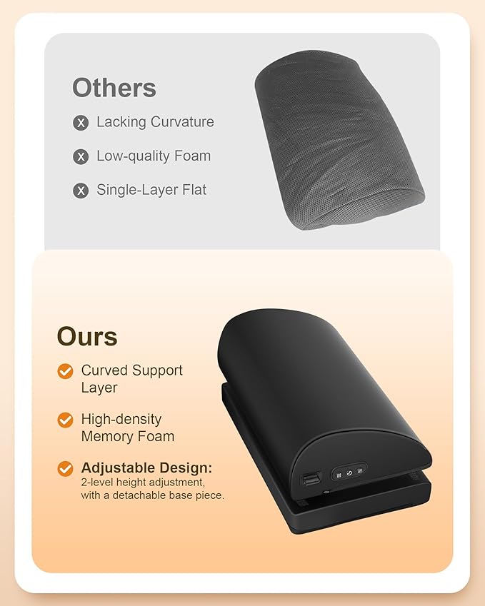 - Footrest with Vibration Massage - Two built-in vibration motors offer 3 intensity levels to gently stimulate your feet and legs, helping reduce fatigue from prolonged sitting or standing. (Auto shut-off after 15 minutes for safety.)