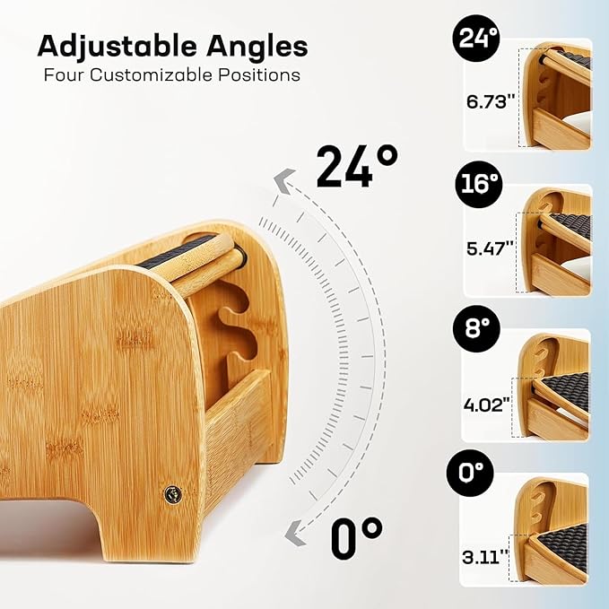 - Sustainable Bamboo Construction: Crafted from sustainable bamboo wood, this foot rest for under desk at work offers excellent durability and stability. With water resistant properties, the bamboo wood footrest is easy to maintain while ensuring long-lasting strength for your workspace.