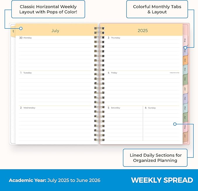 - [STAY ORGANIZED ALL YEAR] July 2025 - June 2026 day planner with 12 months of monthly and weekly pages for easy academic planning and scheduling; 2 additional monthly pages (May 2025 - June 2025) are included