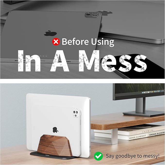 - Single-Slot Vertical Design: Featuring a space-saving single-slot design, this stand holds your laptop upright, freeing up valuable desk space. By reducing clutter and organizing your workspace, it creates a cleaner, more efficient environment for both home and office use.