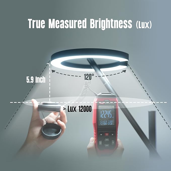 - LED UV-Free Lamp: The GLOWRIUM Bright Light Therapy Lamp is UV-free, mimicking natural light with full spectrum and a brightness of up to 12000 lux. It provides safe, natural, and joyful lighting experience, creating an uplifting and focused atmosphere. It's the perfect gift for friends! (CRI > 95)