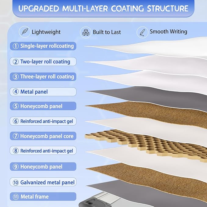 - 🧲Details Define Quality: This white boards dry erase adopts an upgraded multi-layer coating structure design. The board surface is triple-painted, and the internal structure is as high as eleven layers. At the same time, the frame is made of a high-grade solid aluminum frame and ABS plastic corners, which are durable and ensure long-term stable use