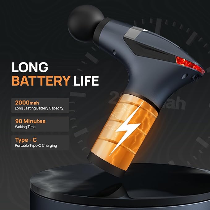 - š šš¬š ššš-š šš”šš«š š¢š§š & š-ššØš®š« šš®š§šš¢š¦š: The 2000mAh battery quickly recharges via USB-C in just 2.5 hours, providing up to 90 Mins of cordless use. It automatically stops after 15 minutes to prevent overuse. Its compact, travel-ready design makes it perfect for gym sessions or home recovery.