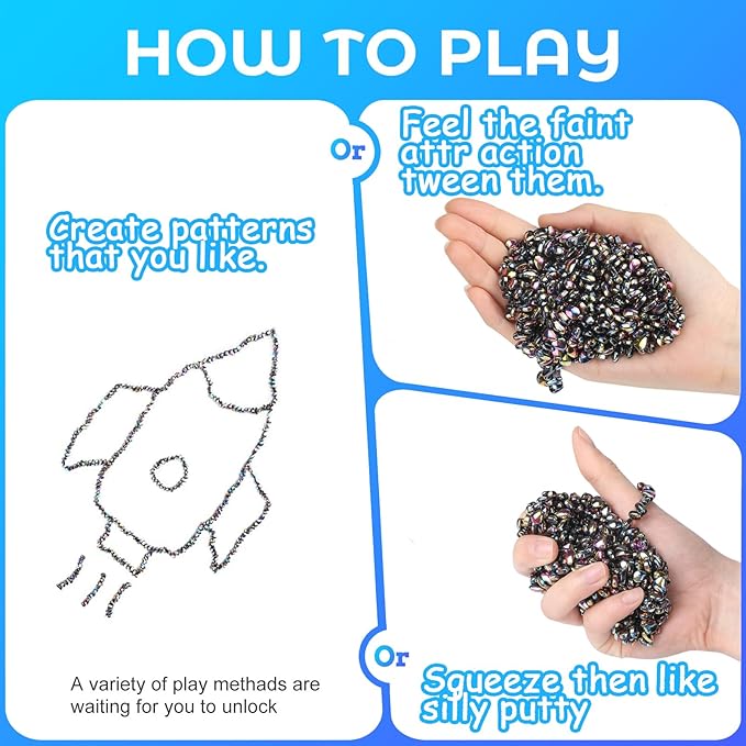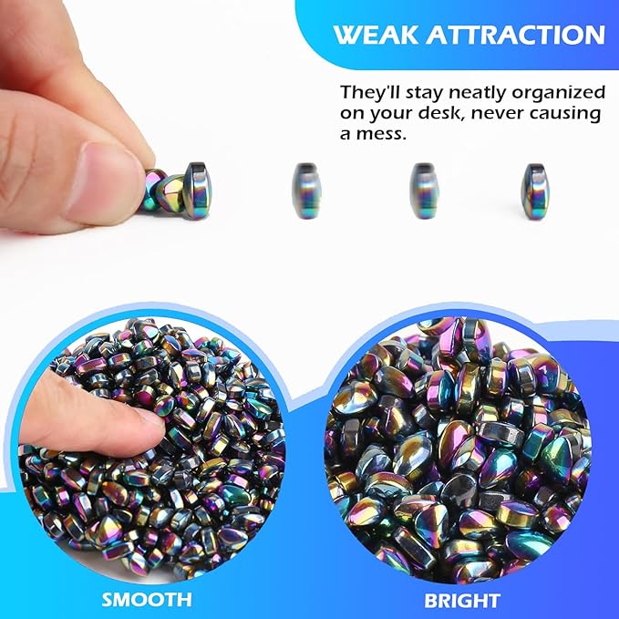 - 【Perfect Size & Premium Feel】 Made from high-quality magnetic material, each stone is approximately 0.27 inches (5mm) with a uniquely irregular shape. Their silky-smooth surface and rounded edges make them comfortable to squeeze and shape—without leaving any residue on hands or surfaces.