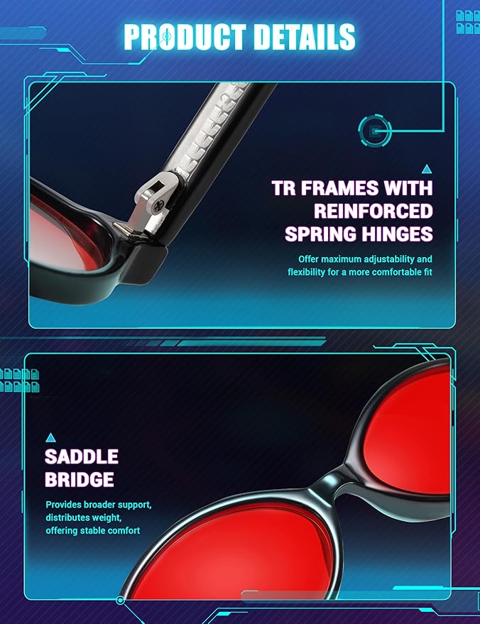 - 【Red Blue Light Blocking】-TIJN's Red Lens Blue Light Glasses feature advanced improving sleeping quality by filtering blue glow of screens;Reducing Eye Strain of blue light exposure, alleviating eye strain, headaches, and screen-induced tiredness