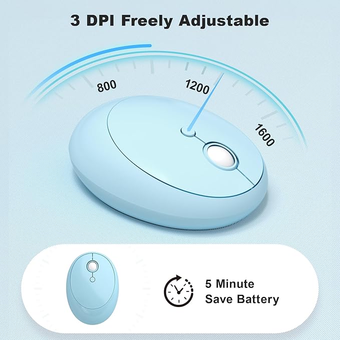 Wireless Keyboard and Mouse Combo, MOWUX - Modern Compact Layout, Colorful Compact Candy Mouse and Retro Round Keyboard Set with Cover, for PC/Laptop/Windows/Mac - Blue Colorful