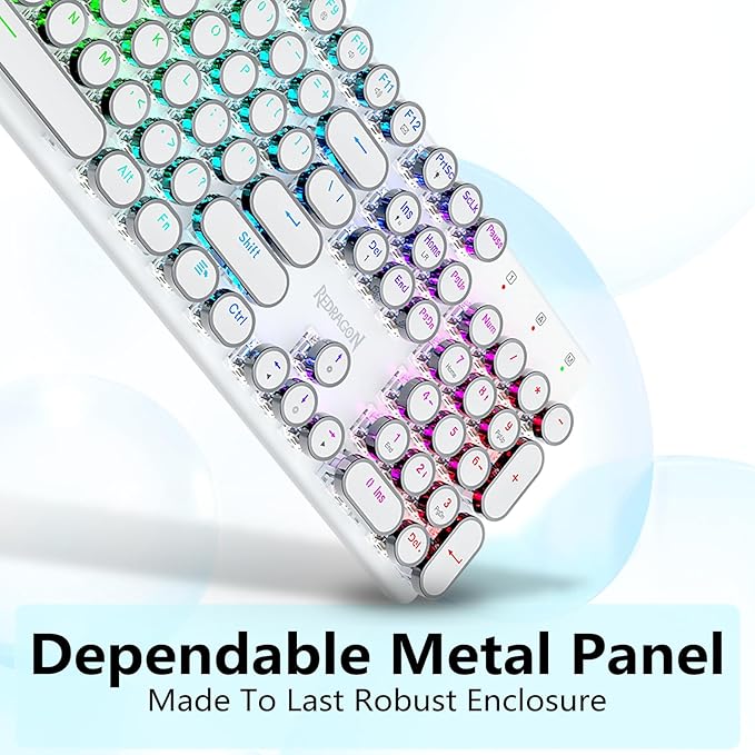 - š„š²ššæš¼ š§šš½š²ššæš¶šš²šæ š¦ššš¹š² šš¶ššµ š š²š°šµš®š»š¶š°š®š¹ šš²šš - Redragon Mechanical blue switches offer medium resistance, audible click sound & tactile feedback, provides responsive and precise gaming environment and performance. Vintage steampunk keyboard round keycaps looks like a classical typewriter, brings you comfortable typing feeling & stable clicking touch.