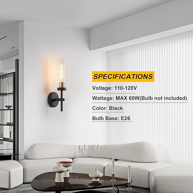 - Clean and Adaptable Design - Perfect for various spaces, our wall sconces set of two feature black and gold finish lamp bodies and thick clear glass shades. With its clean and adaptable Design, this wall lighting seamlessly integrates with various decor styles, making it an ideal choice to enhance your home lighting