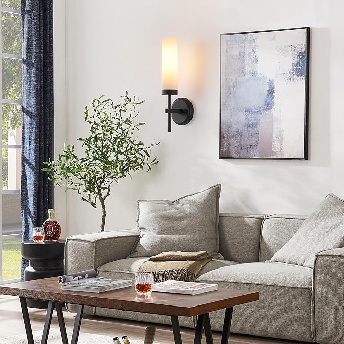 - Clean and Adaptable Design - Perfect for various spaces, our wall sconces set of two feature matte black finish lamp bodies and thick white glass shades. With its clean and adaptable Design, this wall lighting seamlessly integrates with various decor styles, making it an ideal choice to enhance your home lighting