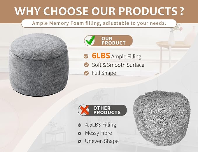 - Lightweight Ottoman Pouf: This small pouf ottoman is perfect for living rooms and bedrooms. The footstool pouf will add functionality and style to your space. The pouffe's lightweight design (6.83 lbs) makes foot poof easy to move around.