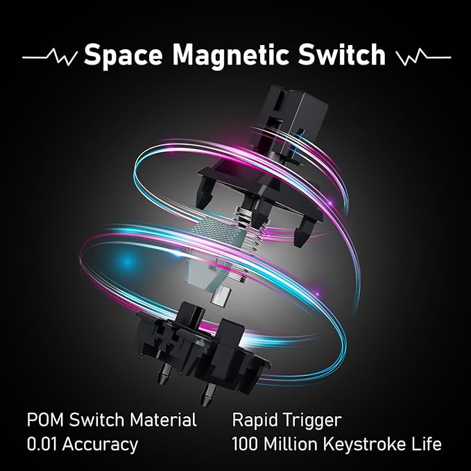 - 【HALL EFFECT MAGNETIC SWITCHES WITH RAPID TRIGGER TECHNOLOGY】:Experience unparalleled speed and precision with EWEADN Battle68 gaming keyboard with Hall Effect magnetic switches. Offering adjustable actuation with an accuracy of up to 0.01mm, this space magnetic switch keyboard eliminates the need for traditional physical switches, delivering faster response times for competitive gaming. Perfect for FPS, MOBA, and rhythm games, providing an edge over your competition.